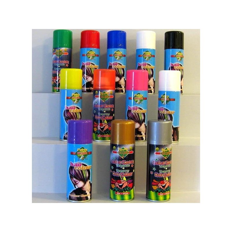 Maquillage en spray pour les cheveux. S'enlève avec du shampooing.