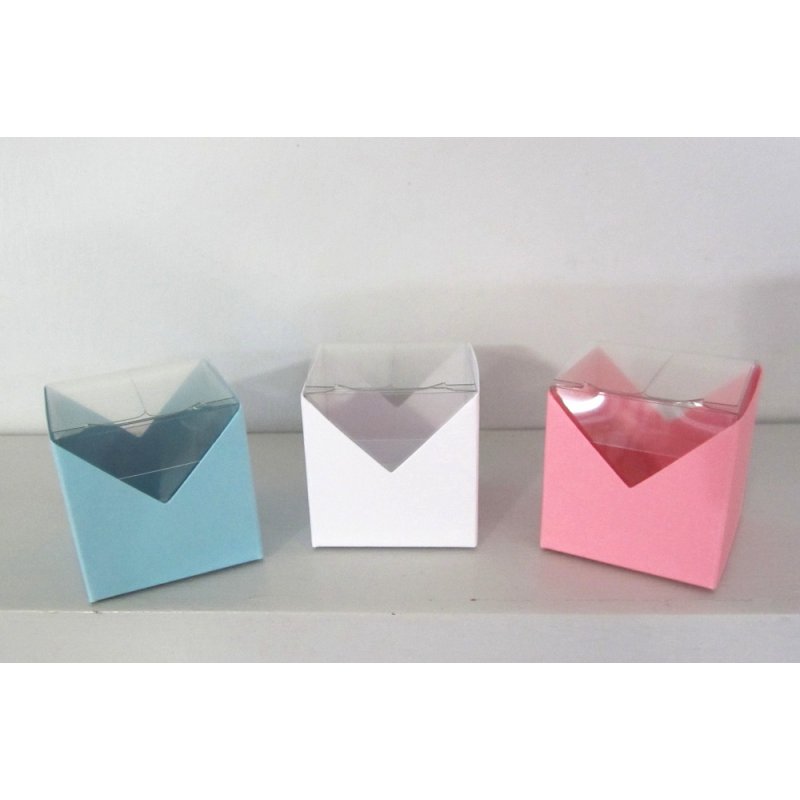 Boîtes transparentes avec un fond en carton de diverses couleurs