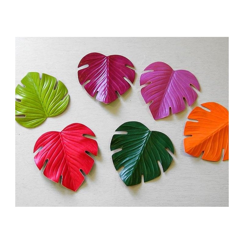 Feuilles 12 cm x 12 cm, en gomme, bicolores recto-verso. Peuvent servir de sous-verres ou bouteilles.