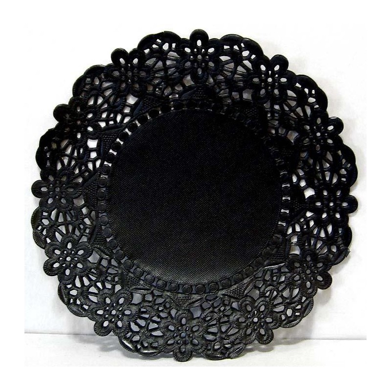 Jolies dentelles noires en papier ingraissable. La taille de 34 cm peut servir de set de table.