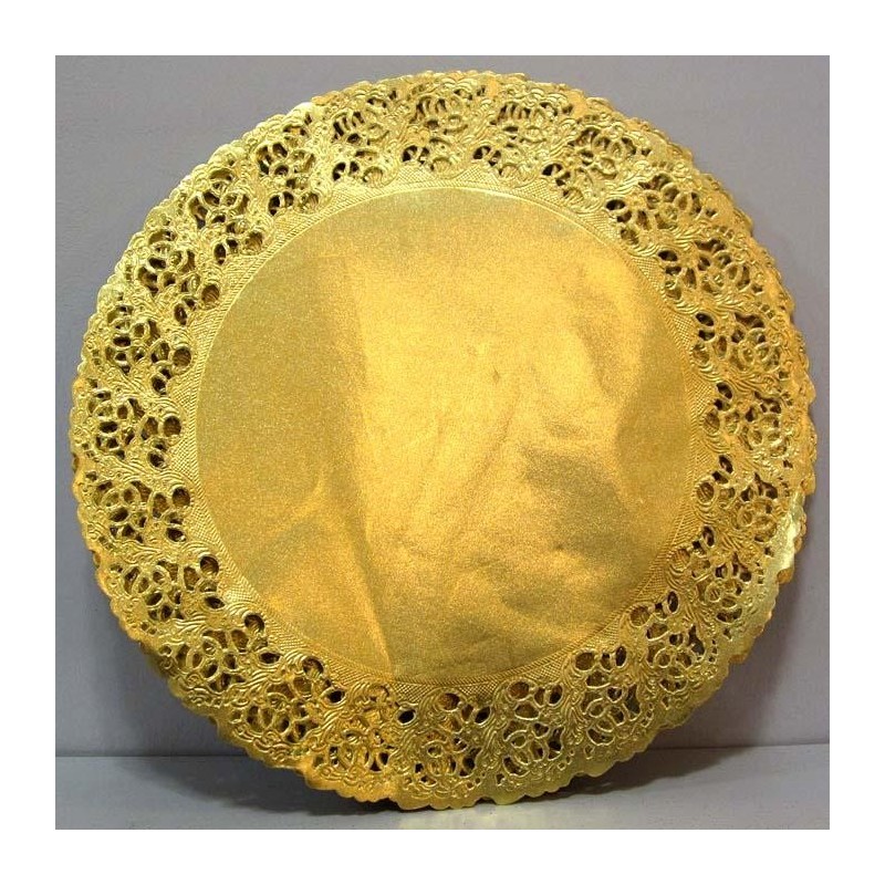 Dentelles en papier couleur or.Le dessin peut varier d'une taille à l'autre. Vendues au paquet de 10 ou paquets de 100.