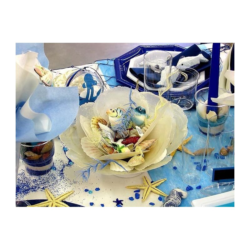 Centre de table composé de nacre et divers poissons.