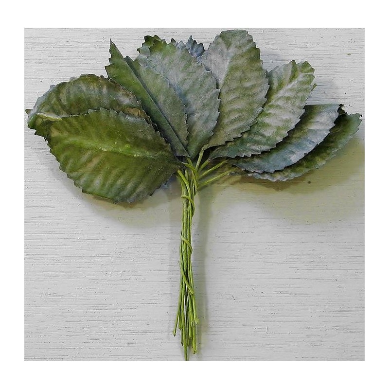 Feuilles de 7 cm x 3,5 cm + la tige. Peuvent être utilisées individuellement. Vendu au bouquet de 12 feuilles et au paquet de 144 feuilles.