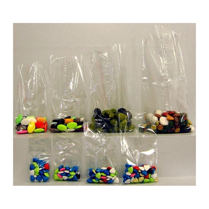 Sacs polypro alimentaires plats. Les mesures sont exprimées en millimètres. Le fond est une simple soudure et les sacs ne tiennent pas debout.
