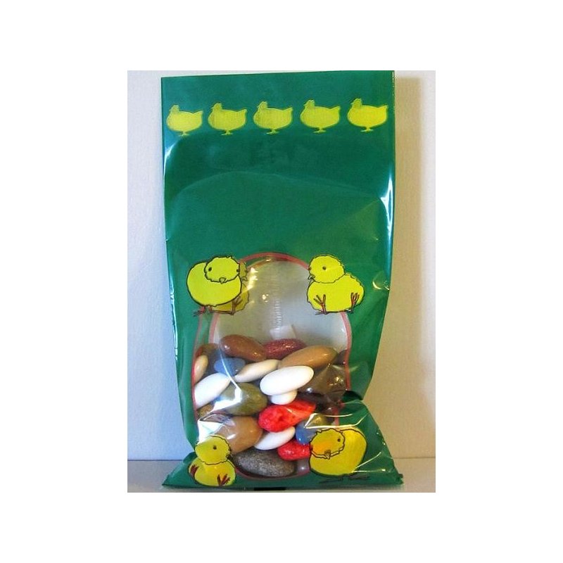 Sachets polypro alimentaire poussins. pour mettre les dragées ou les oeufs en chocolat !le fond est une simple soudure et les sacs ne tiennent pas debout.